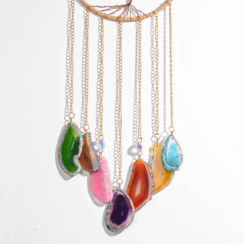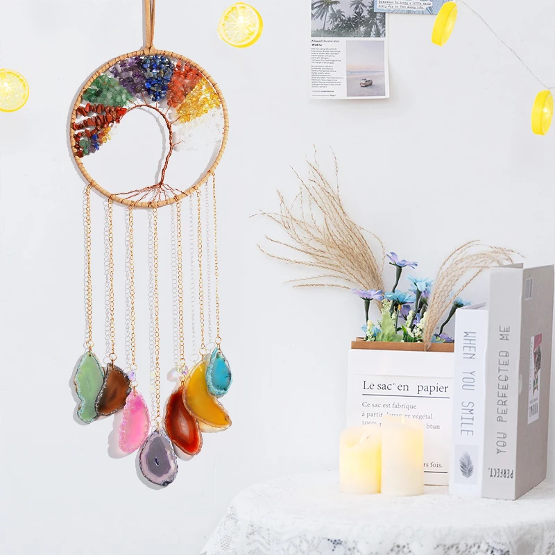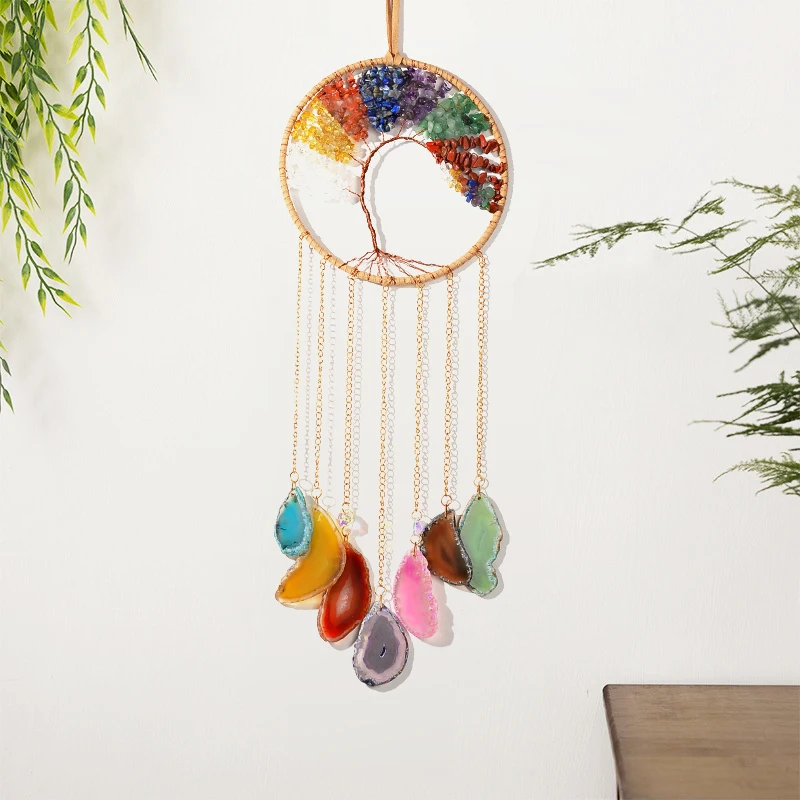 Door de handmatige afwerking is elke dromenvanger uniek in detail en steenschikking. Perfect als spirituele woondecoratie, meditatie accessoire of als bijzonder cadeau.