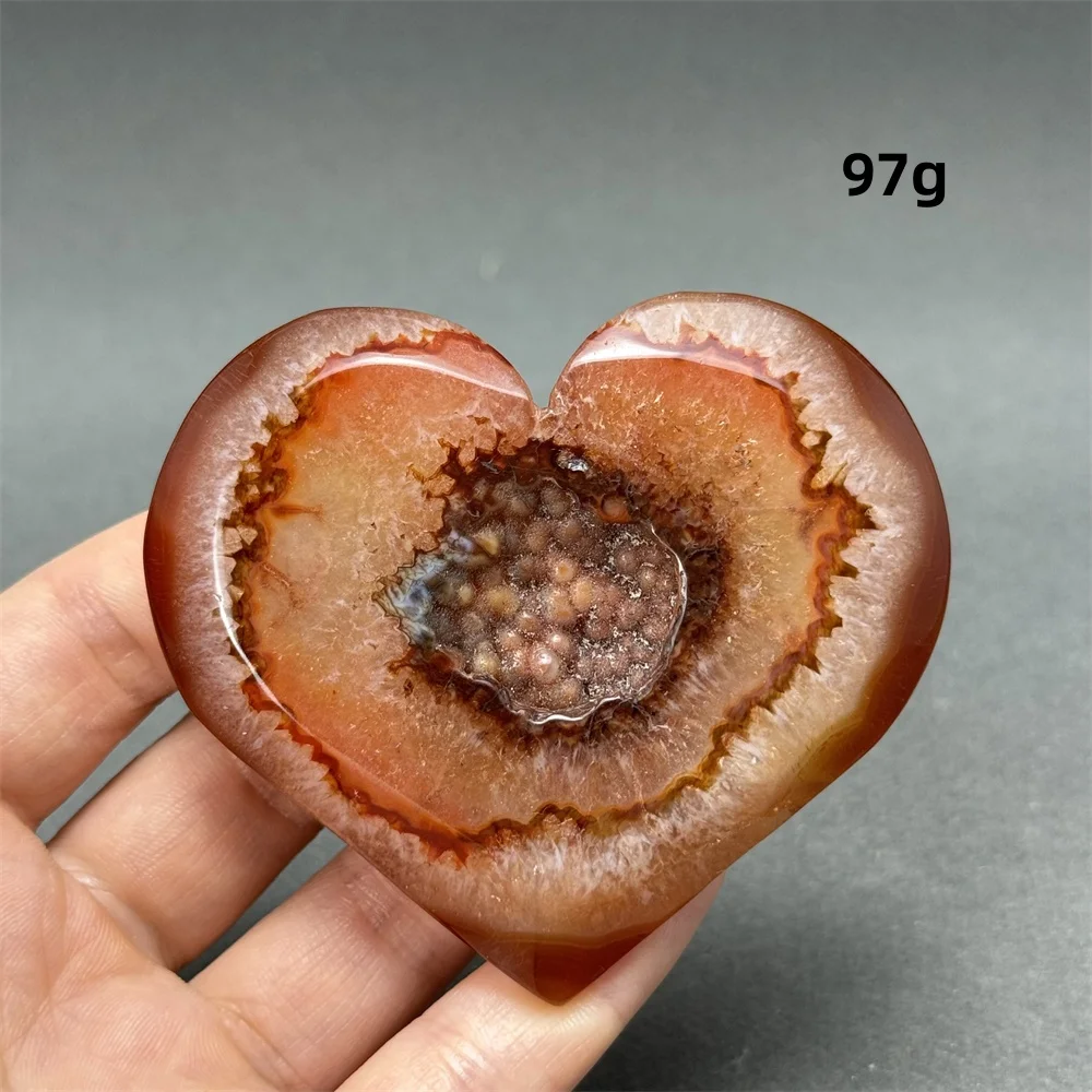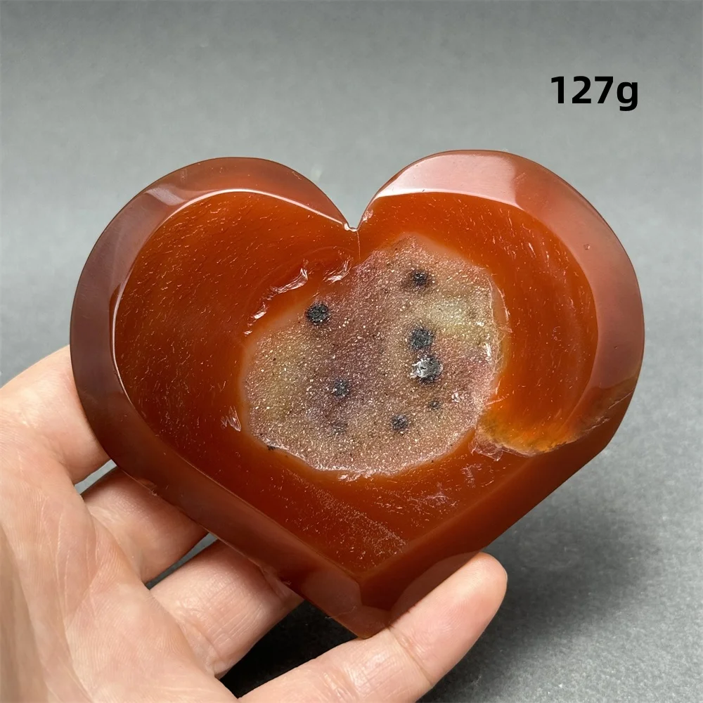 Rode agaat staat bekend om zijn energie van kracht, passie en stabiliteit. Het hartsymbolisme versterkt deze eigenschappen, waardoor dit stuk zowel decoratief als betekenisvol is. Perfect als eyecatcher op een bureau, nachtkastje, in een vitrinekast of als bijzonder cadeau voor een geliefde.
