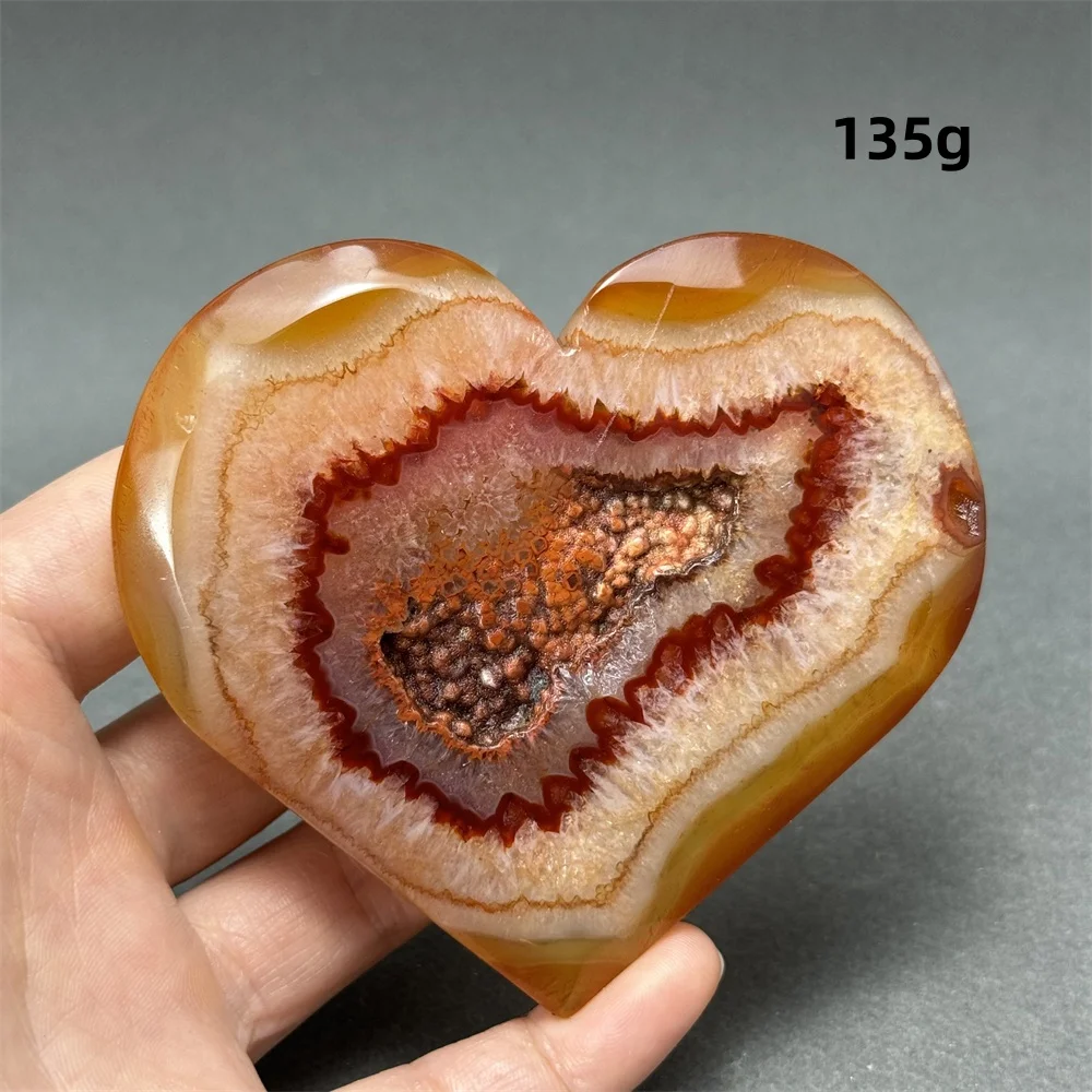 Breng liefde en warmte in je interieur of persoonlijke collectie met dit hartvormige rode agaat. Deze prachtige natuursteen combineert de diepe, warme roodtinten van agaat met een elegant, handgepolijst hartvormig design. Door de natuurlijke variatie in patronen en kleur is elk hart uniek, waardoor je een exclusief natuurproduct in handen hebt.